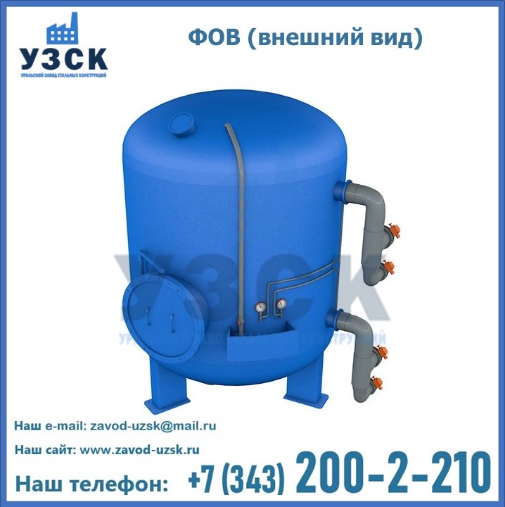 Удаление взвешенных веществ различного уровня дисперсности из рабочих жидкостей эффективно проводит фильтр осветлительный типа ФОВ (скорый или механический) — вертикально-цилиндрической формы установка, разработанная для систем водоподготовки различного класса. Оборудование представляет собой однокамерный агрегат для очистки воды рекомендованный для применения на станциях очистки стоков, в коммунальных котельных, на ТЭЦ, в промышленных отопительных системах и пр. Заказать производство ФОВ фильтров предлагает наш Уральский завод стальных конструкций в Рудный. У нас можно купить фильтрационное оборудование различного класса и типа, в том числе фильтры ФОВ из нержавеющей стали.