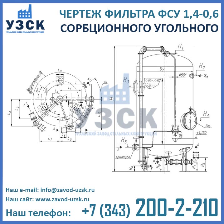 Если вы ищете фильтры ФСУ-1,4-0,6 в Рудный от изготовителя, то Вы на правильном пути! Уральский завод стальных конструкций – непосредственный производитель сорбционных фильтров ФСУ, предлагающий самые выгодные цены на ФСУ-1.4-0.6 в Рудный. По окончании процесса производства угольные фильтры проходят гидравлические испытания пробным давлением 0,9 МПа на аттестованном гидростенде, находящимся в собственности завода УЗСК. Мы гарантируем высокое качество выпускаемой продукции, и в этом уже убедились ведущие предприятия промышленного сектора России и стран ЕАЭС (см. раздел «Наши клиенты»).