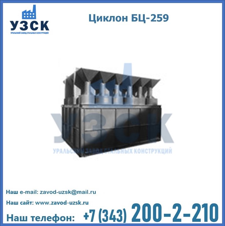 Приобрести качественное оборудование, в том числе, циклоны БЦ-259, можно в компании УЗСК в Рудный. Мы предлагаем долговечную и надежную продукцию по приемлемой цене. Заказать и купить циклоны или другие изделия высокого качества можно через сайт Уральского Завода Стальных Конструкций, или позвонив по указанному в разделе «Контакты» телефону.