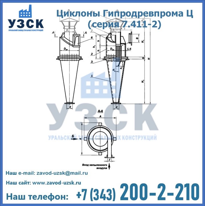 Циклоны Гипродревпрома Ц (серия 7.411-2) высокого качества можно купить в компании «УЗСК» в Рудный. Наши специалисты предоставят всю необходимую информацию информацию и помогут с выбором модели циклона. Подробные технические характеристики, конструкцию, параметры, ассортимент и стоимость продукции можно также найти на сайте УЗСК.