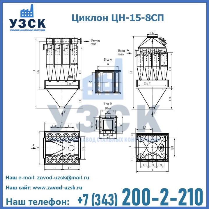 Завод «УЗСК» в Рудный предлагает большой выбор циклонов ЦН-15-500×8СП и прочих устройств, полностью укомплектованных и готовых к эксплуатации. Мы гарантируем соответствие оборудования всем требованиям ГОСТ и ТУ, износостойкость и высокую производительность предлагаемого оборудования. Уральский Завод Стальных Конструкций изготавливает и продает надежное, эффективное и производительное оборудование, имеющее длительную гарантию и большой эксплуатационный ресурс. Если требуется изготовить циклон нестандартных размеров, то такой вариант выполнения заказа тоже предусмотрен, так как предприятие имеет собственные производственные площади и надежных поставщиков. На все поставляемое или производимое оборудование имеются чертежи и прочая техническая документация. Заказать и купить циклоны или прочее оборудование высокого качества и по доступной цене можно через наш сайт или по указанному в разделе