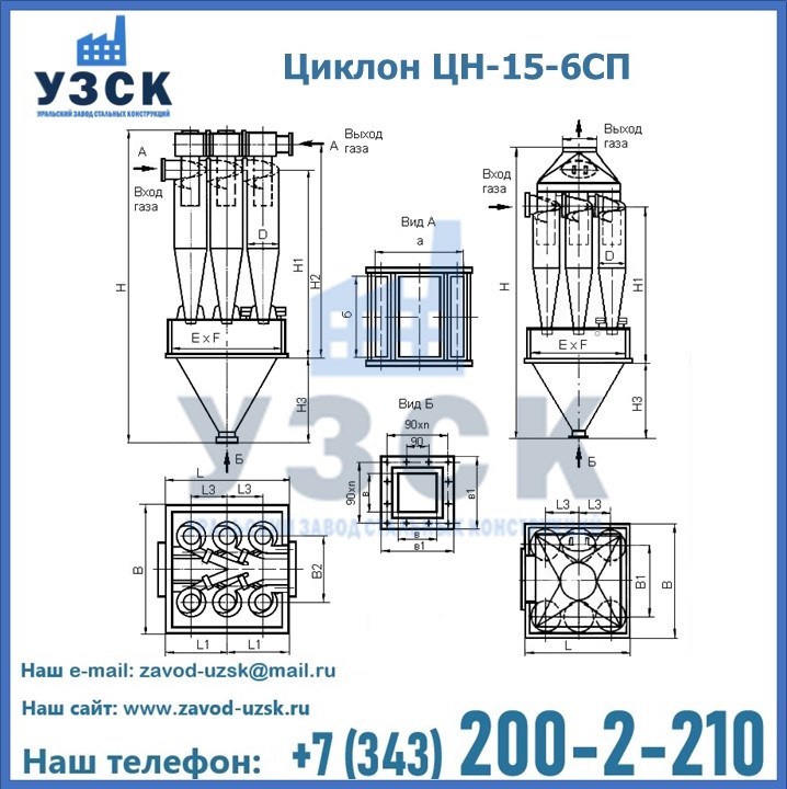 Завод «УЗСК» в Рудный предлагает большой выбор циклонов ЦН-15-600×6СП и прочих устройств, полностью укомплектованных и готовых к эксплуатации. Мы гарантируем соответствие оборудования всем требованиям ГОСТ и ТУ, износостойкость и высокую производительность предлагаемого оборудования. Уральский Завод Стальных Конструкций изготавливает и продает надежное, эффективное и производительное оборудование, имеющее длительную гарантию и большой эксплуатационный ресурс. Если требуется изготовить циклон нестандартных размеров, то такой вариант выполнения заказа тоже предусмотрен, так как предприятие имеет собственные производственные площади и надежных поставщиков. На все поставляемое или производимое оборудование имеются чертежи и прочая техническая документация. Заказать и купить циклоны или прочее оборудование высокого качества и по доступной цене можно через наш сайт или по указанному в разделе «Контакты» телефону.