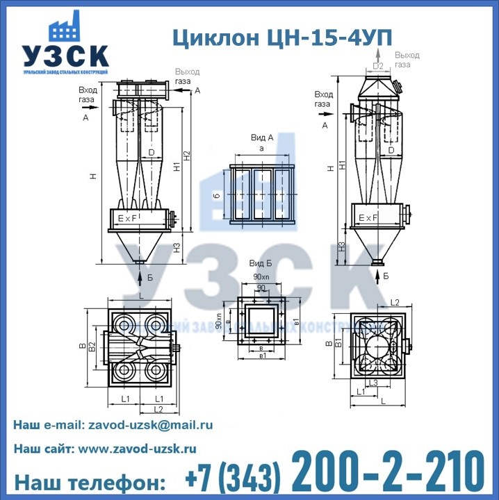 Завод «УЗСК» в Рудный предлагает большой выбор циклонов ЦН-15-900×4УП и прочих устройств, полностью укомплектованных и готовых к эксплуатации. Мы гарантируем соответствие оборудования всем требованиям ГОСТ и ТУ, износостойкость и высокую производительность предлагаемого оборудования. Уральский Завод Стальных Конструкций изготавливает и продает надежное, эффективное и производительное оборудование, имеющее длительную гарантию и большой эксплуатационный ресурс. Если требуется изготовить циклон нестандартных размеров, то такой вариант выполнения заказа тоже предусмотрен, так как предприятие имеет собственные производственные площади и надежных поставщиков. На все поставляемое или производимое оборудование имеются чертежи и прочая техническая документация. Заказать и купить циклоны или прочее оборудование высокого качества и по доступной цене можно через наш сайт или по указанному в разделе «Контакты» телефону.