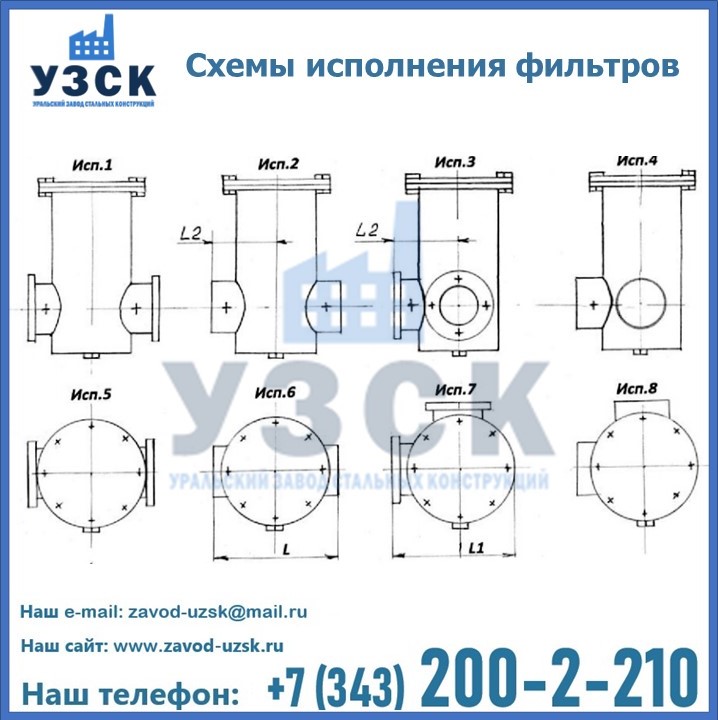 Из-за этого и разнится обозначение на ФГ и ФГУ, соответственно. Фильтры также могут быть вертикальными и горизонтальными, также может быть предусмотрена врезка сбросного трубопровода. Какой бы тип фильтра ни понадобился, завод «УЗСК» в Рудный занимается производством любого из них.