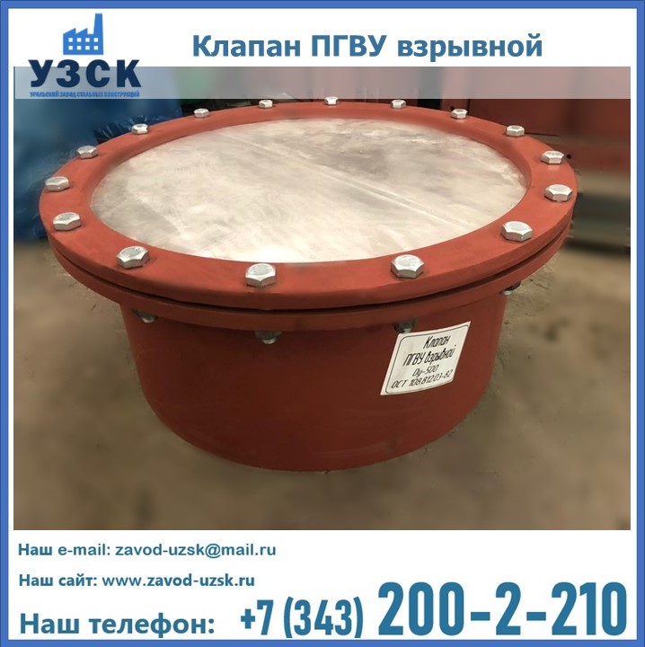 Взрывной предохранительный клапан ПГВУ в Рудный оборудуется в виде сквозного отверстия (окна) на взрывоопасном элементе энергетических установок. Такое окно закрывается специальной мембраной, а также оснащается створками или материалом, способным легко разрушиться в результате взрыва, что позволяет избежать высокого давления, образуемого взрывом.