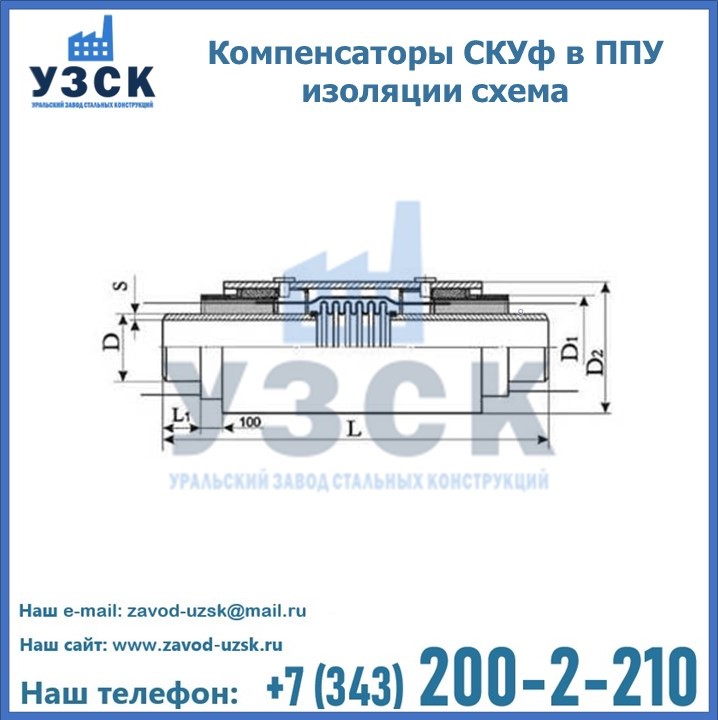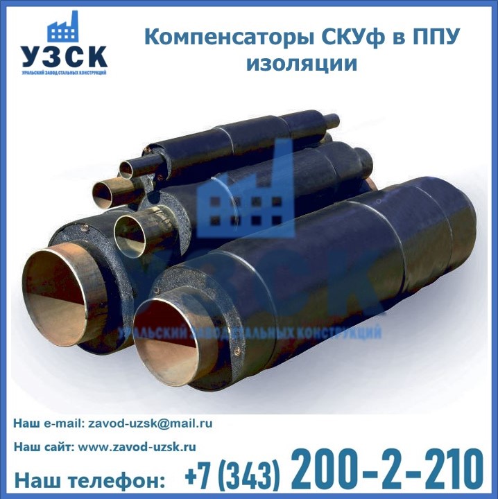 Если трубы для прокладки усилены теплоизоляцией ППУ, то на них допустимо устанавливать только cильфонный компенсатор СКУф в ППУ с такими же размерами теплоизоляционного слоя. На данный момент, такие устройства считаются одними из наиболее надежных, эффективных и долговечных элементов, способных обеспечить бесперебойную работу трубопроводов. На заводе «УЗСК» вы можете купить СКУф ППУ и другие компенсаторы по приемлемой цене, от надежных производителей. УЗСК осуществляет поставки сильфонных компенсаторов СКУ в ППУ любых типоразмеров. Наше предприятие поставляет и производит оборудование, имеющее длительную гарантию и большой эксплуатационный ресурс. Если требуется изготовить нестандартное изделие, то такой вариант выполнения заказа тоже предусмотрен, так как предприятие имеет собственные производственные площади и надежных поставщиков. На все оборудование имеются чертежи и прочая техническая документация. Чтобы заказать сильфонный узел СКУф в ППУ изоляции в Рудный необходимо направить запрос через форму онлайн-заказа на сайте или связаться с нашими специалистами по телефонам, указанным в разделе «КОНТАКТЫ .