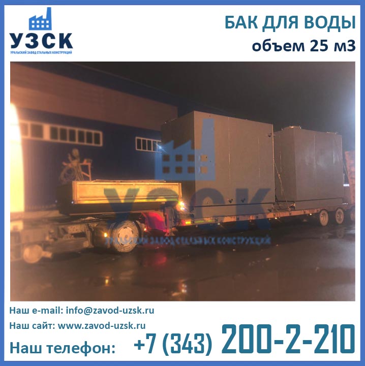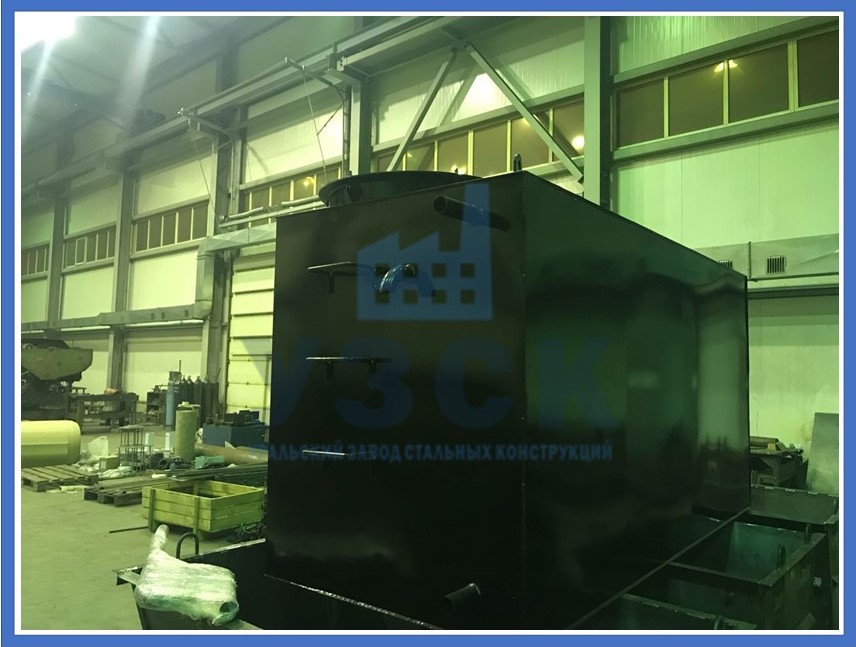 Бак проходит гидравлические испытания – емкость под заливом выдерживают 2 часа с простукиванием сварных швов. После испытания выполняют защиту от коррозии. Емкости оборудуют патрубками для заполнения и опорожнения сосуда с запорной арматурой. Устанавливаются указатели уровня, лестницы для обслуживания.