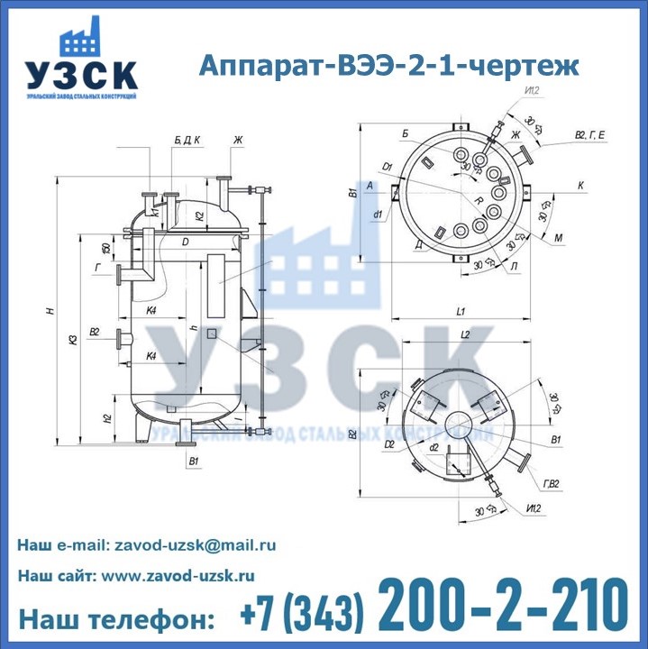 Емкостные аппараты ВЭЭ представляют вертикальную цилиндрическую емкость с эллиптическими днищами. В силу специфической формы сосуды выдерживают избыточное давление. Материалы изготовления внутренней полости не подвержены коррозии. Сосуд используется в Рудный для хранения сжиженных газов, жидкостей и как промежуточное звено технологической цепочки в химической, нефтехимической, целлюлозной промышленности.